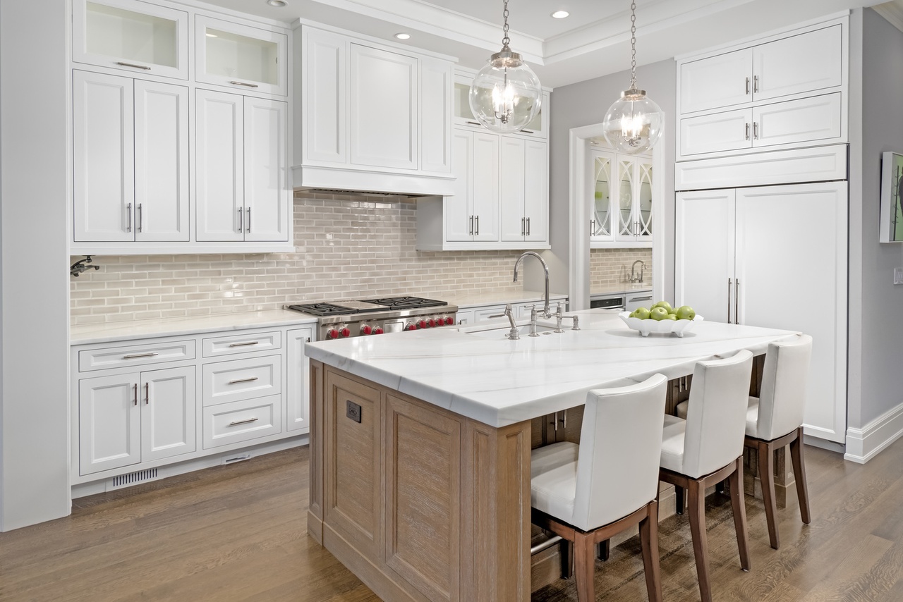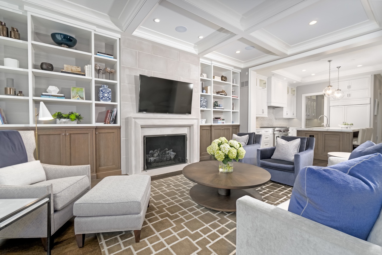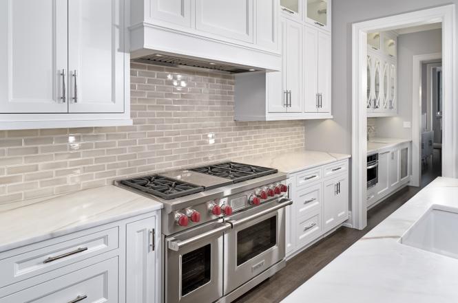 This limestone façade residence by Hastings Builders offers 6 bedrooms, 6 full baths, 2 half baths, and 4 outdoor spaces designed for both entertaining and private retreat. The first floor features formal living and dining areas alongside a top-of-the-line chef’s kitchen with Wolf, Sub-Zero, and Bosch appliances, opening to a spacious great room with direct outdoor access.