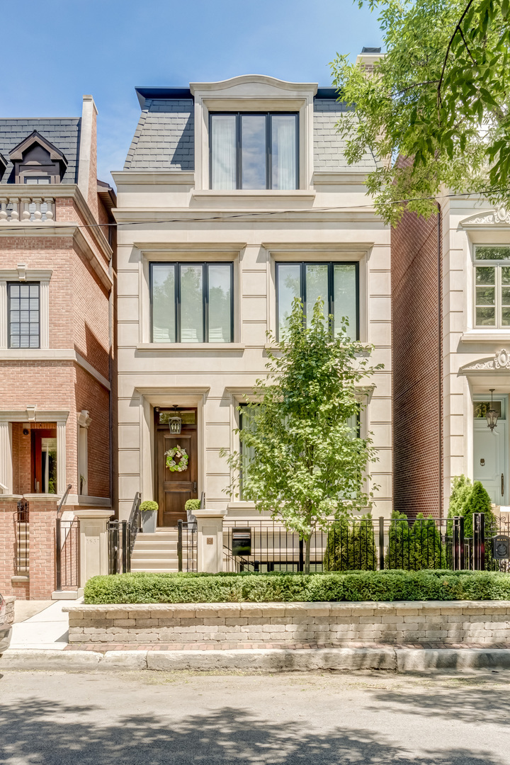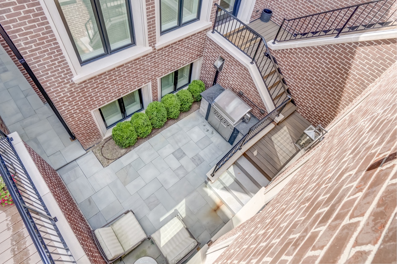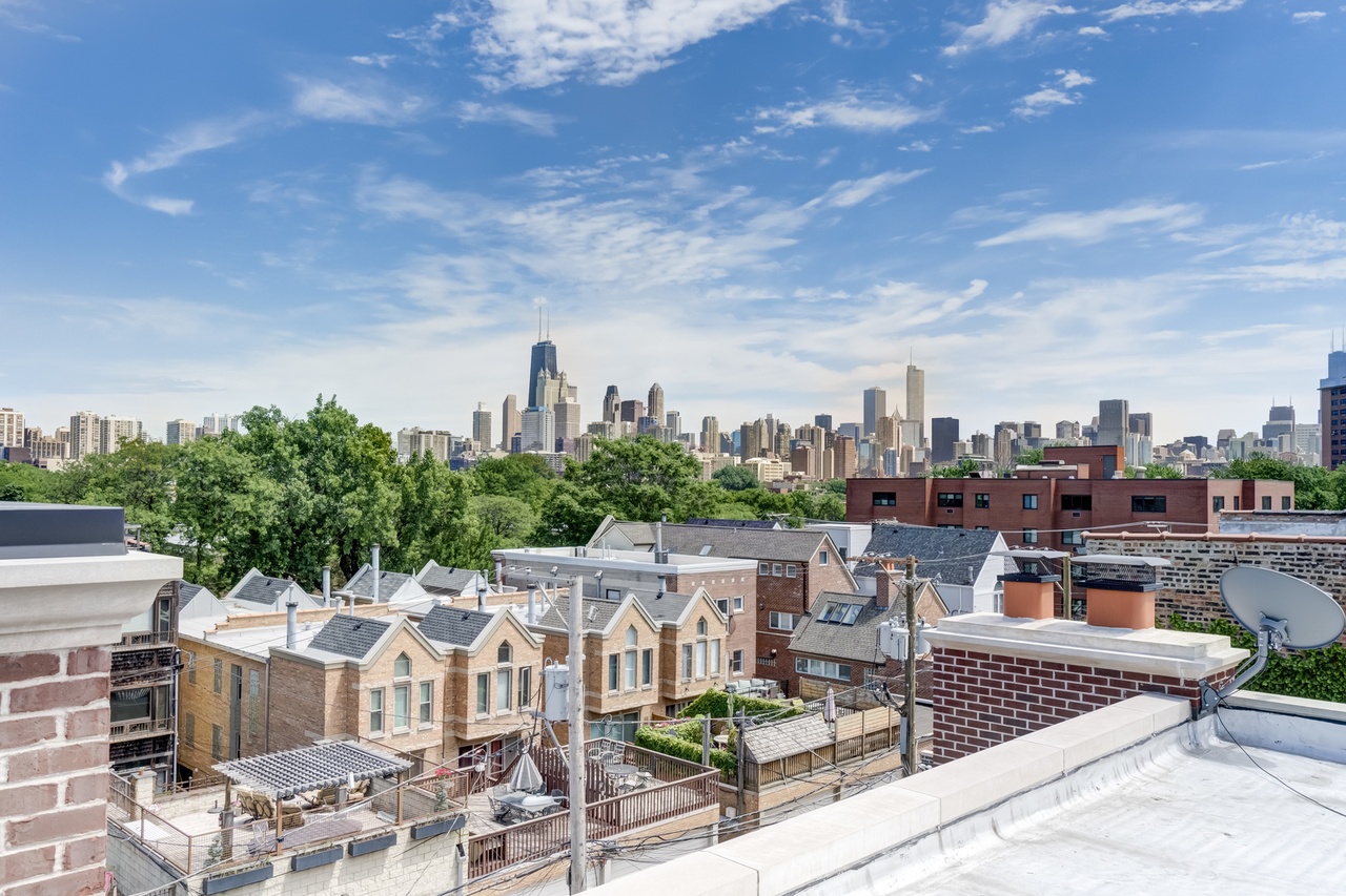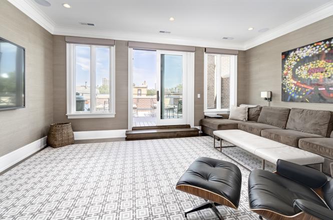 Elegant details include 4-inch rift and quarter sawn white oak floors, custom built-ins, solid wood crown moulding, and a four-stop mahogany elevator. A wine cellar, heated bathroom floors, motorized shades, and radiant heat in multiple zones enhance everyday comfort. The fourth-floor roof deck crowns the home with privacy and sweeping skyline views.