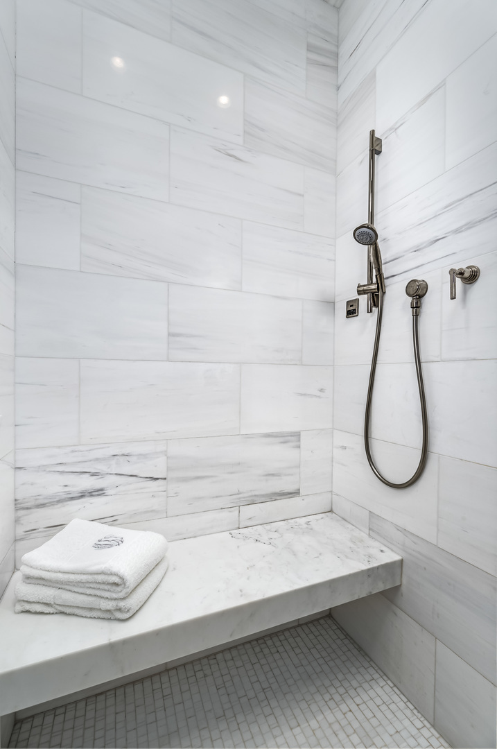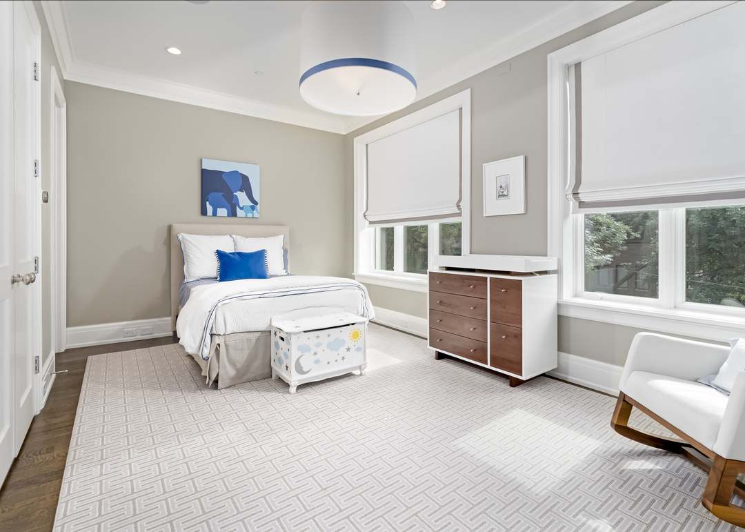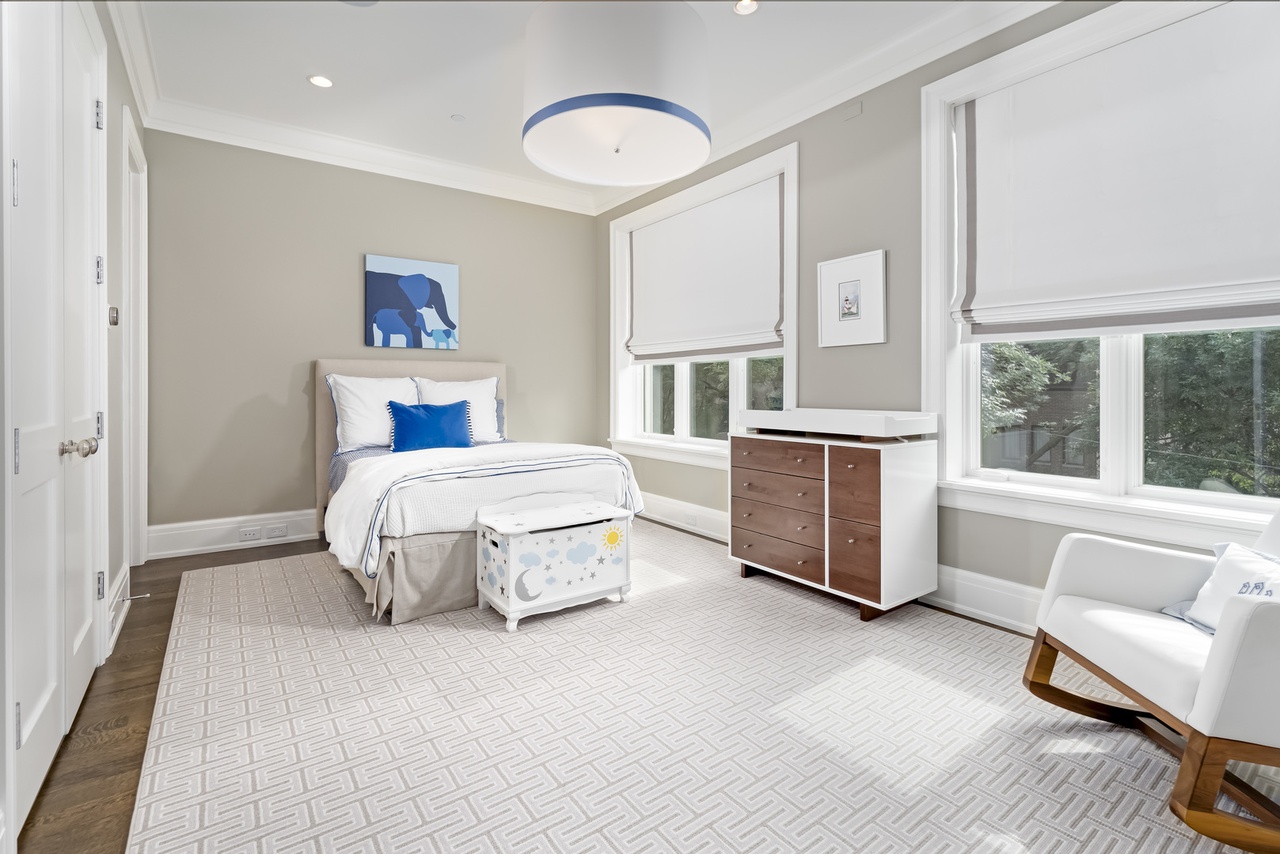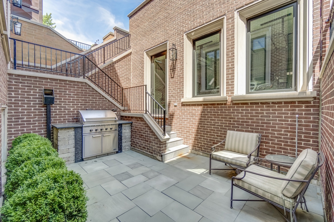 Elegant details include 4-inch rift and quarter sawn white oak floors, custom built-ins, solid wood crown moulding, and a four-stop mahogany elevator. A wine cellar, heated bathroom floors, motorized shades, and radiant heat in multiple zones enhance everyday comfort. The fourth-floor roof deck crowns the home with privacy and sweeping skyline views.