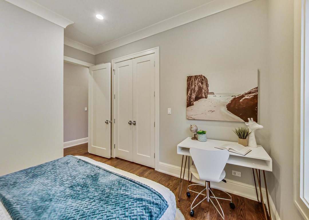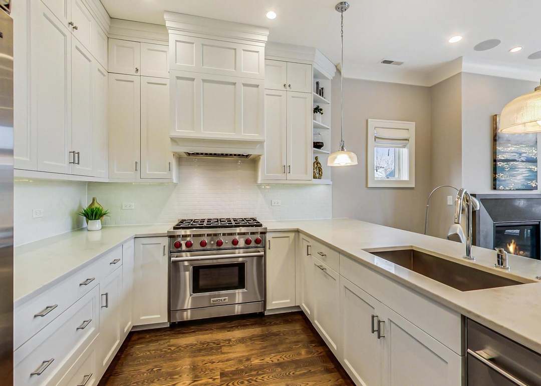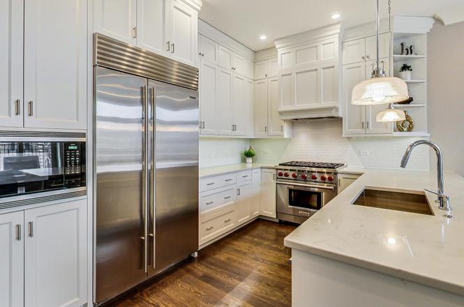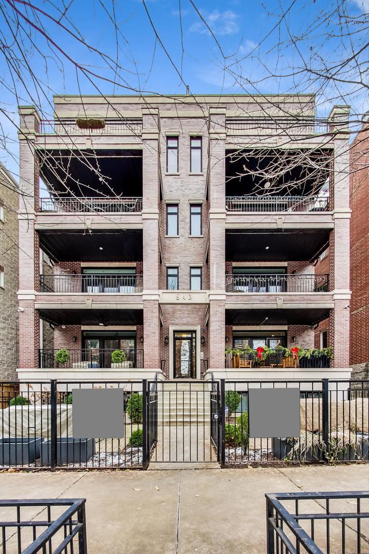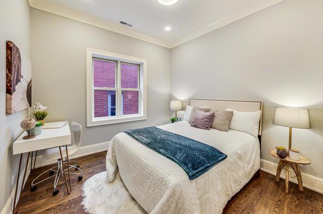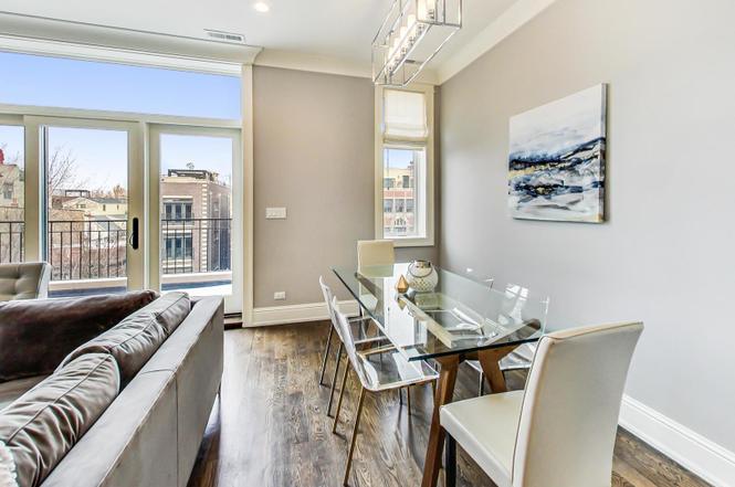 This sun-filled 3-bedroom, 2-bath penthouse, built in 2016 by Hastings Builders, offers refined design and modern convenience in the heart of East Lakeview. The wide living and dining area features a custom marble fireplace, 4-inch white oak flooring, and detailed millwork. The chef’s kitchen includes Sub-Zero, Wolf, and Asko appliances, quartzite countertops, and full-height cabinetry.