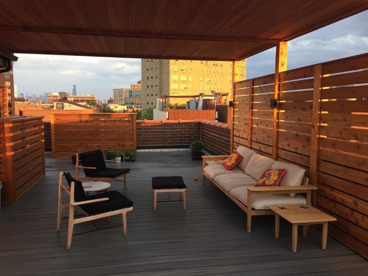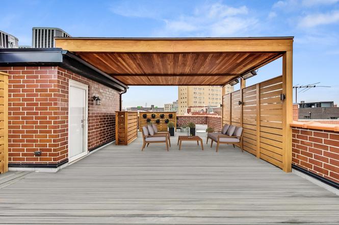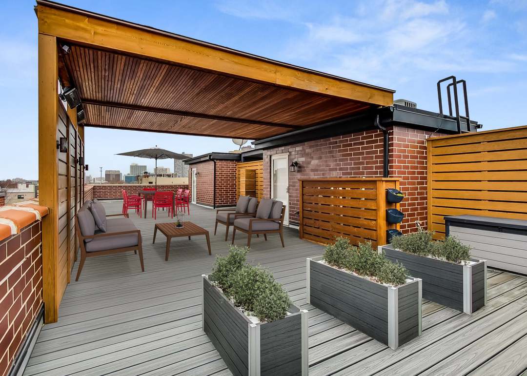 The primary suite provides a large walk-in closet and a spa-like bath with heated marble floors, dual vanity, and oversized steam shower. Outdoor living includes a private front terrace and a full rooftop deck with pergola, planters, and utilities for a personalized retreat. Heated garage parking completes this meticulously maintained home in the Nettelhorst School District.
